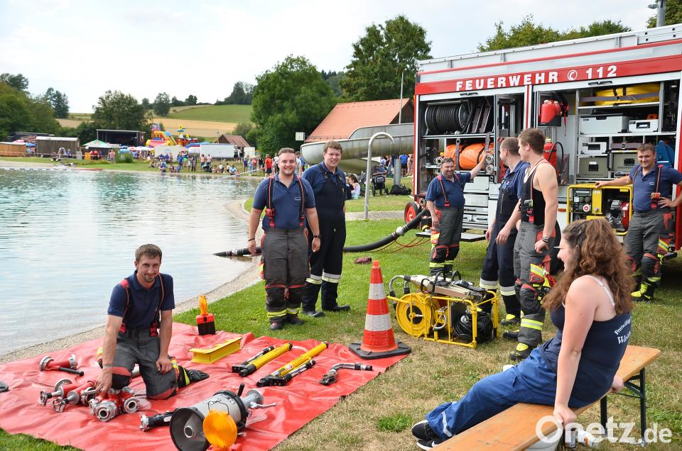 (fjo) Seit Monaten fieberte das Vereinskartell diesem besonderen Termin entgegen. Ein „Blaulicht-Nachmittag“ sollte wie beim Heimatfest 2013 der Anziehungsmagnet am ersten Festtag sein. Mit allerhand Ausrüstung und viel Personal stellten sich unterschiedlichste Rettungskräfte als Teilnehmer kostenlos zur Verfügung. Rund um den großen Naturbadesee glich das Areal der Freizeitanlage einer ansehnlichen Ausstellungsmesse. Der Eintrittspreis von 6 Euro schreckte jedoch ab Mittag nicht wenige Interessenten ab, da es nur Kombi-Tickets für das gesamte Wochenende gab.
