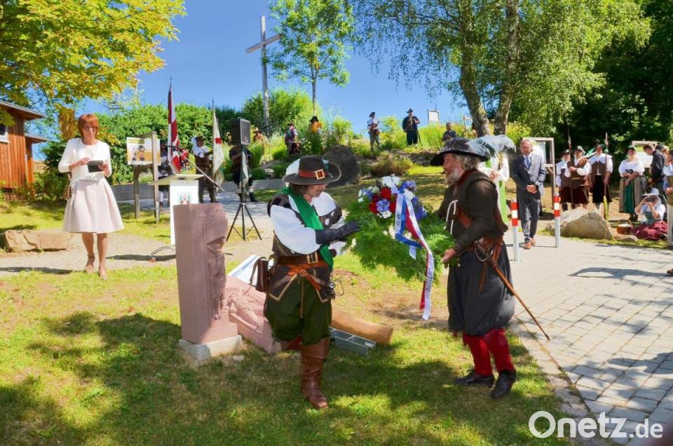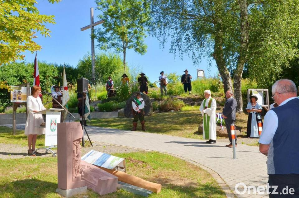 Der Dufthang ist um einen weiteren Blickfang reicher. Eine gebührende Umrahmung durch Feldmesse, historische Gruppen und Musik begleitete die Einweihung des „Meilensteins der Geschichte“ zum 400. Jahrestag des "Waidhauser Friedens". Die gewandeten Mitglieder des Weydhauser Fähnleins und von der Amberger Schloßwache verwiesen in jene historische Epoche.