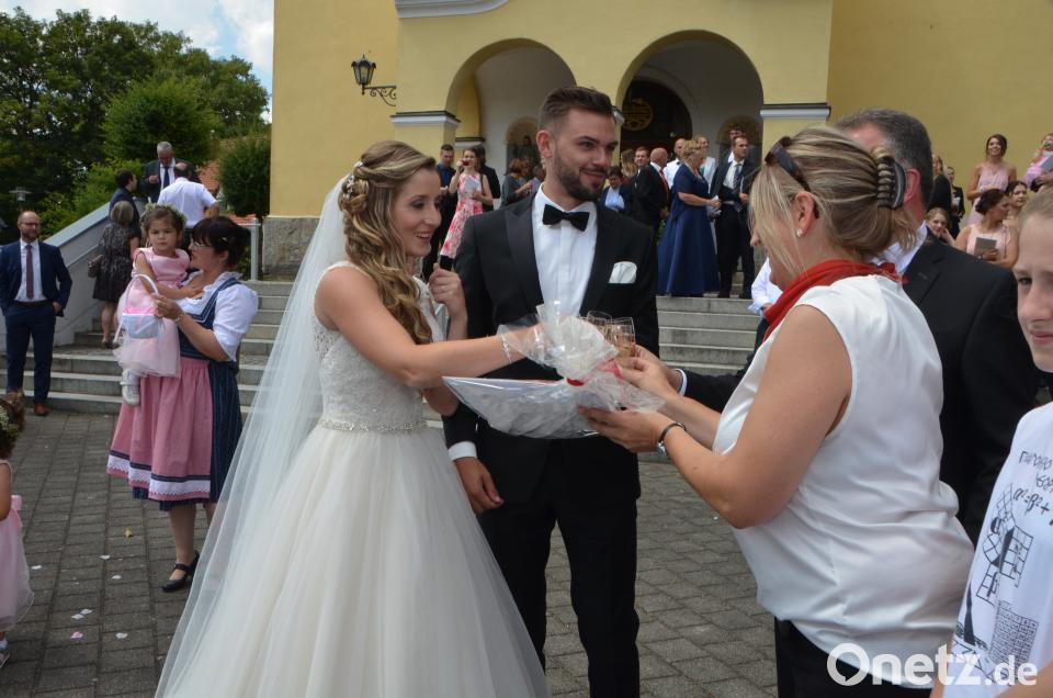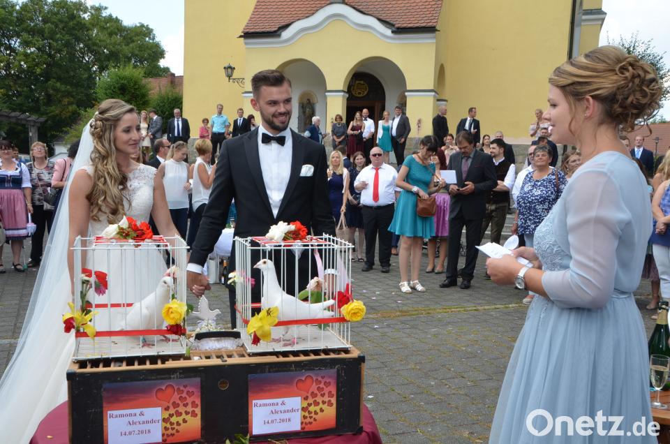 (dob) Ramona Gallitzdörfer(24) aus Albersrieth und Alexander Fritsch(29) aus Waldau versprechen sich vor Pfarrer Marek Baron ewige Liebe. Weiße Tauben steigen in den sommerlichen Himmel auf. "Bleibt in meiner Liebe", heißt es im Johannes-Evangelium, das Pfarrer Marek Baronzur Hochzeit am Samstag in der Benefiziumskirche St. Johannes Nepomuk auswählte. Der Geistliche war dazu aus Maxhütte-Haidhof angereist. Als Firmpate der Braut ließ er es sich nicht nehmen, dem Brautpaar den Ehesegen zu spenden.