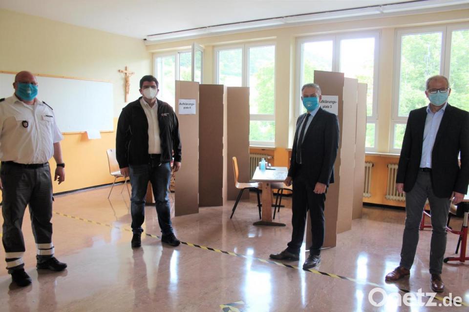 Die Corona-Antikörperstudie im Landkreis Tirschenreuth läuft seit Montag – getestet wird neben Tirschenreuth und Wiesau auch im ehemaligen Schulhaus Waldeck. Am Dienstagnachmittag ließen sich Landrat Roland Grillmeier und Bürgermeister Roman Schäffler von den BRK-Vertretern Holger Schedl und Christian Stahl über die Nutzung und den Ablauf informieren.