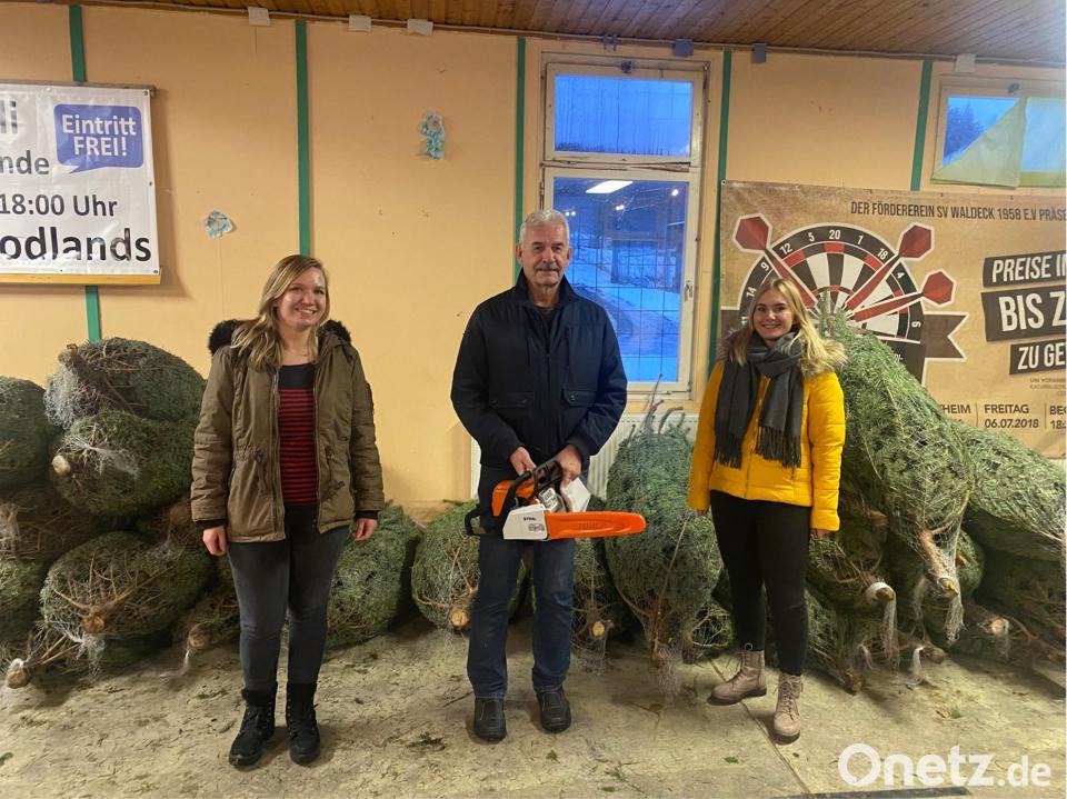 Förderverein des SV Waldeck legt zum Christbaum Motorsäge dazu