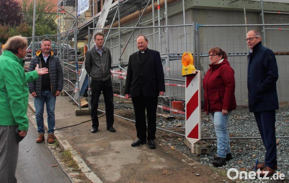 Pfarrer Heribert Stretz hatte unter anderem Vertreter der Kirchenverwaltung, der Stadt Kemnath, des Kindergartens sowie Architekt Günther Lenk eingeladen. "Es geht kräftig voran, und wir freuen uns schon sehr“, betonte Stretz. Auch Bürgermeister Roman Schäffler machte deutlich, dass es sich bei der Erweiterung des St.-Anna-Kindergartens um eine dringend notwendige Einrichtung für Waldeck handle. Architekt Günther Lenk skizzierte kurz das Bauvorhaben und erinnerte daran, dass es die Projektidee bereits seit 2017 gebe. „Bisher liegen wir absolut im Zeitplan“, sagte Lenk. Ziel sei es, dass noch vor Weihnachten der Estrich eingebracht werde und dieser dann über die Feiertage trocknen könne. In der kalten Jahreszeit könne dann der Innenausbau voranschreiten.