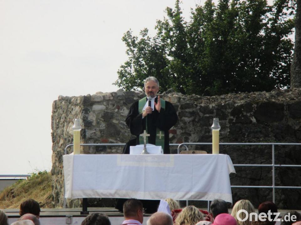 Die Klänge des evangelischen Posaunenchors Wirbenz, Kemnath und Immenreuth unter der Leitung von Susanne Kropf hießen die Besucher, darunter auch katholische Gläubige, willkommen. Angesichts des sonnigen Wetters hatten sich diese ein schattiges Plätzchen unterhalb der Burgmauern gesucht.