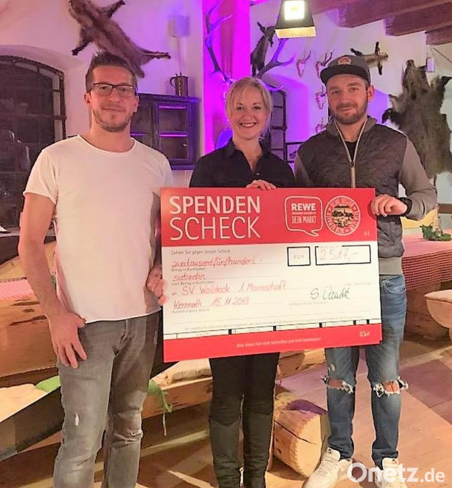 Susann Daubitz übergab diesmal an Co-Trainer Stefan Kuchenreuther und dem Spielführer der ersten Mannschaft, Bastian Diepold, einen Scheck über 2517 Euro für den Spielbetrieb sowie zum Unterhalt des Sportgeländes. Kuchenreuther und Diepold bedankten der Spenderin und ließen sie bei dem anschließenden Umtrunk hochleben.