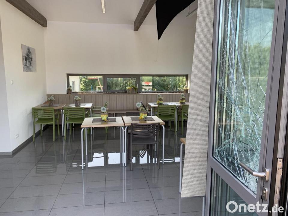 Die Täter haben im erst 2013 komplett neu gebauten Kiosk-Gebäude regelrecht gewütet. Besonders schlimm: Im großen Gastraum und der angrenzenden Küche steht das Wasser zentimeterhoch. "Wahrscheinlich wollten die Einbrecher die Spülmaschine stehlen und haben dabei den Wasserschlauch herausgerissen", sagt Kathrin Weber, die unentgeltlich im Bad hilft, wo gerade Bedarf ist.