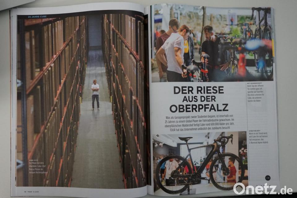 Apropos Rennrad. Um genau dieses ist die Zeitschrift "Tour" gestrickt. Die Themen handeln von Laufrädertests, neuen Schaltgruppen oder der richtigen Ernährung für lange Ausfahrten. Und hin und wieder porträtieren die Reporter wichtige Unternehmen der Szene. Dass Cube dazugehört, ist keine Frage. Immerhin sind die Waldershofer mittlerweile - nach eigener Aussage - die führende Marke in Deutschland. Mit mehr als 600 000 produzierten Rädern in diesem Jahr und einem Umsatz von 393 Millionen Euro 2016/2027 ist das Unternehmen ein Branchenriese.