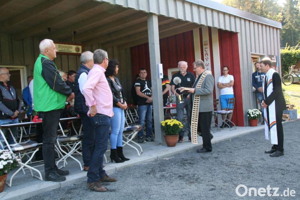 Los ging es im Frühjahr 2017. Seither haben die Helfer gut 20 000 Euro an Material verbaut. Gottes Segen erbaten nun Stadtpfarrer Bernd Philipp und Pfarrer Andreas Kraft für das Gebäude und alle, die hier ein- und ausgehen, sowie für den neu angeschafften Rasenroboter, der die Platzwarte enorm entlastet. Die beiden Geistlichen würdigten auch die hervorragende Nachwuchsarbeit des TSV, der damit zahlreichen Kindern und Jugendlichen eine sinnvolle Freizeitbeschäftigung anbiete. Zum Ehrenamt merkte Stadtpfarrer Bernd Philipp an: "Es ist toll, wie hier das Ehrenamt gelebt wird und nicht auf die Uhr und das Geld geschaut wird."