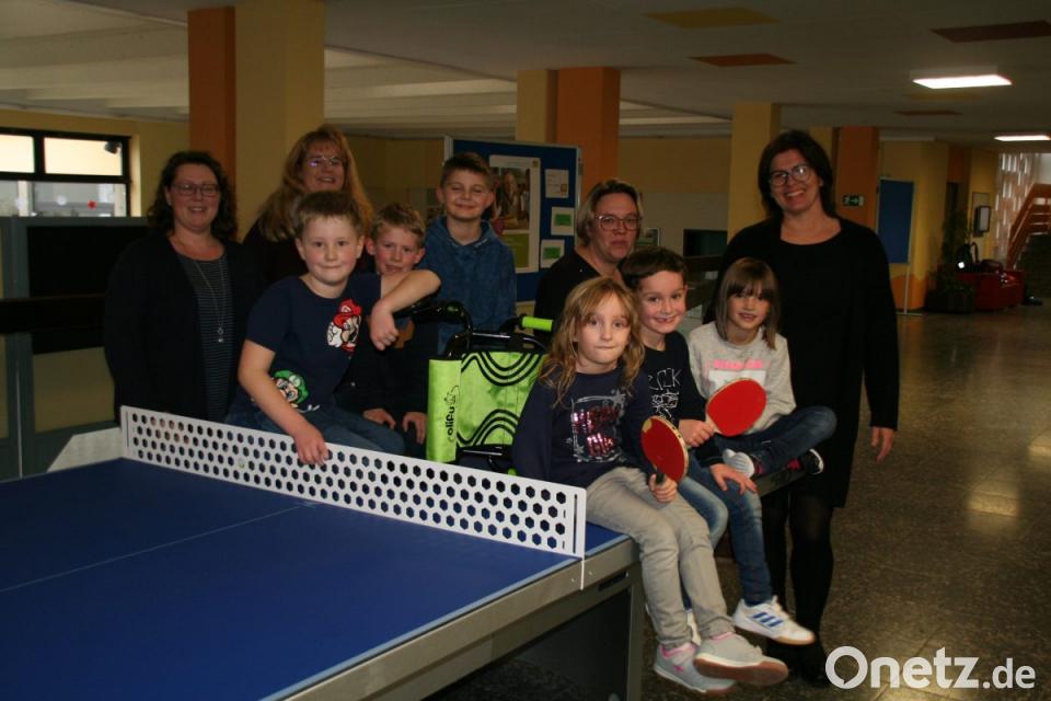 Das Kiba-Team nutzt zweimal im Jahr die Aula für ihre beliebten Basare. Der volle Erlös von 1000 Euro aus der Herbstaktion kommt den Schülern zugute: In Absprache mit der Schulleitung wurden dafür eine Tischtennisplatte und ein Racer für den Pausenhof angeschafft, damit die Jungen und Mädchen genügend Abwechslung vorfinden. Eine Abordnung der Kinder mit Schulleiterin Petra Andritzky freuten sich über die beiden Sachspenden vom Kiba-Team, das schon jetzt auf den nächsten Basar am Samstag, 23. Februar, in der Schule hinweist.