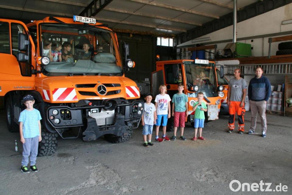 Dabei durften die kleinen Gäste auch in den Fahrzeugen Platz nehmen. Von besonderem Interesse waren die Funktionsweisen des Radladers und des Lastkraftwagens mit dem aufgebauten Kran. Mit Bauhofmitarbeiterin Ingrid Lüttmer wurden anschließend Pflanzen eingetopft. Treffsicherheit und Kraft war anschließend beim Nageleinschlagen gefragt. Für Erfrischungen sorgte das Bauhofteam.