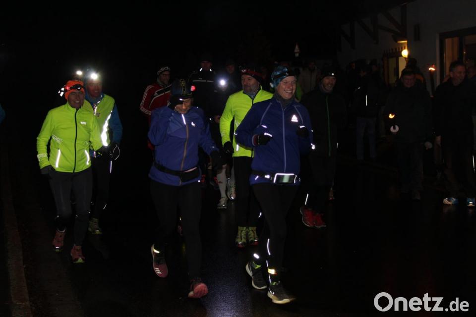 Ausgerüstet mit Stirnlampen und Fackeln machten sich die Läufer auf die zehn Kilometer lange Strecke, die Zoigl-Wanderer mussten fünf Kilometer zurücklegen. Auf dem Weg war auch eine Verpflegungsstation mit warmen Getränken eingerichtet.