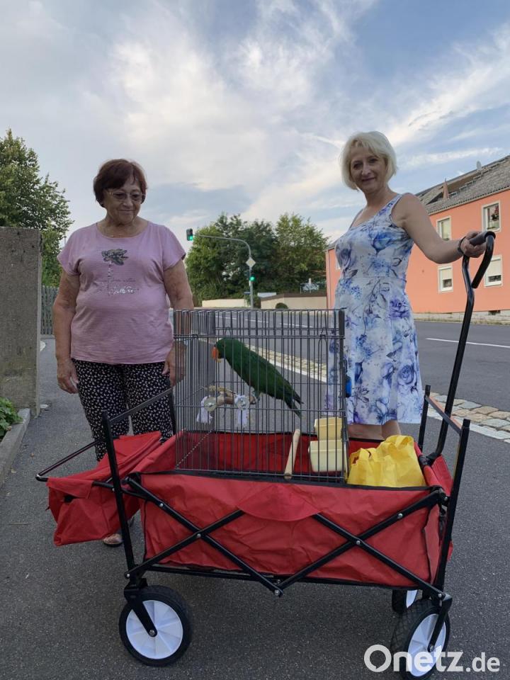 Der Papagei muss an die frische Luft. Das denken sich Carmen Steinbacher und ihre Mutter Erika Sveropa aus Waldershof fast jeden Tag. Immer wenn die Sonne scheint und sie Zeit haben, kommt Max‘ großer Auftritt. „Wir setzen ihn dann in den großen Transportkäfig und stellen diesen in den Bollerwagen“, sagt Carmen Steinbacher. Und schon geht es los.