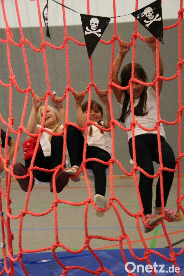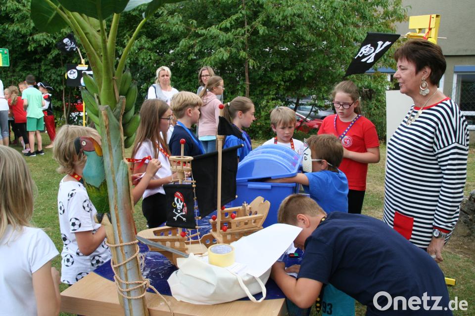 Viele Schüler und einige Lehrerinnen in Piratenkostümen gaben der Veranstaltung ein echtes "Freibeuter-Flair." Während der Elternbeirat für die Verköstigung verantwortlich zeichnete und die Kinder-Combo für die musikalische Unterhaltung sorgte, waren die Lehrkräfte an den Spielstationen eingebunden. Der Piratenparcours in der Sporthalle verlangte eine Menge Geschick beim Klettern, Springen und Balancieren. Im Werkraum war Kreativität beim Falten von Piratenschiffen angesagt. Weitere Aktionen waren Schiffe versenken, Piratenschiff-Wettpusten, eine Schatzsuche. Augenklappen-Schminken, Piratenhüte-Basteln sowie eine Kunstausstellung. Sehr gut kam das Büfett mit orientalischen Spezialitäten der Familie Akid Ajaaj aus dem Irak an, deren Kinder sich in der Schule sehr wohlfühlen. Das "Jobsti-Geschichtenbuch" mit den schönsten Episoden aus dem Schulleben war ganz schnell ausverkauft.