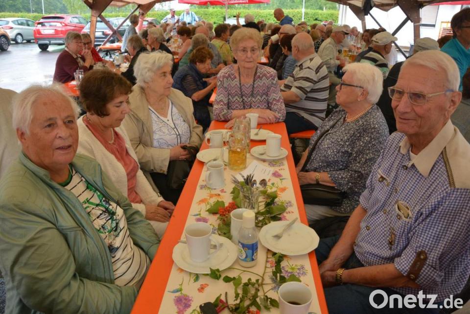 Rund 140 Senioren aus Waldershof waren am Freitagnachmittag zum TSV-Sportgelände am Hammerrang gekommen. Sie waren der Einladung der Seniorenbeauftragten Carmen Altermann und Gerhard Weber gefolgt. Trotz zum Teil strömenden Regens ließen sich die Senioren ihre gute Laune nicht vermiesen und erlebten unterhaltsame Stunden im eigens aufgebauten Festzelt. Für Stimmung sorgte auch die Band „Viertakter“ aus Marktredwitz und Waldershof, die mit Kultsongs aus fünf Jahrzehnten begeisterte.