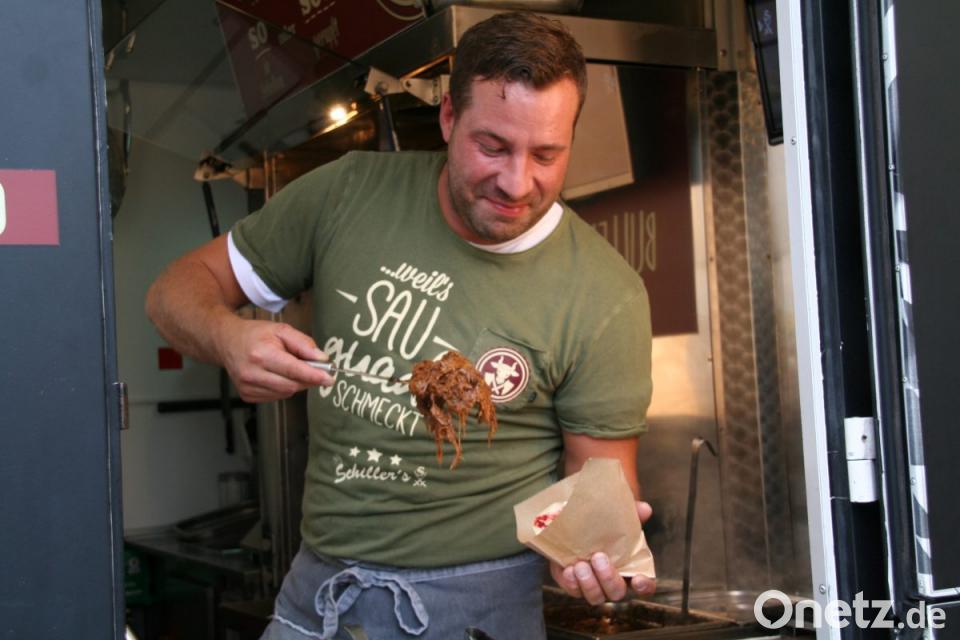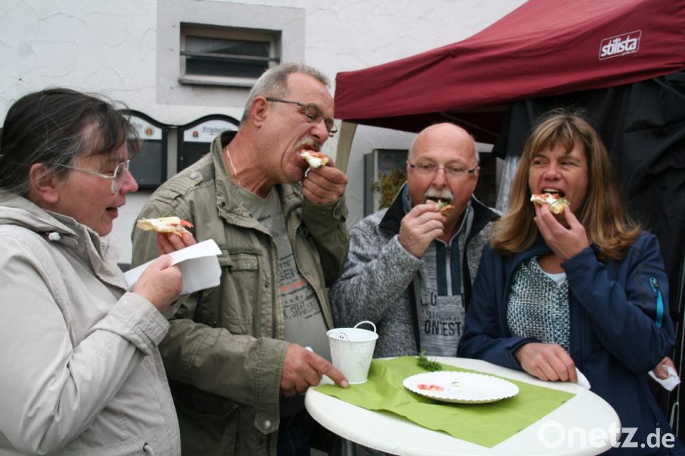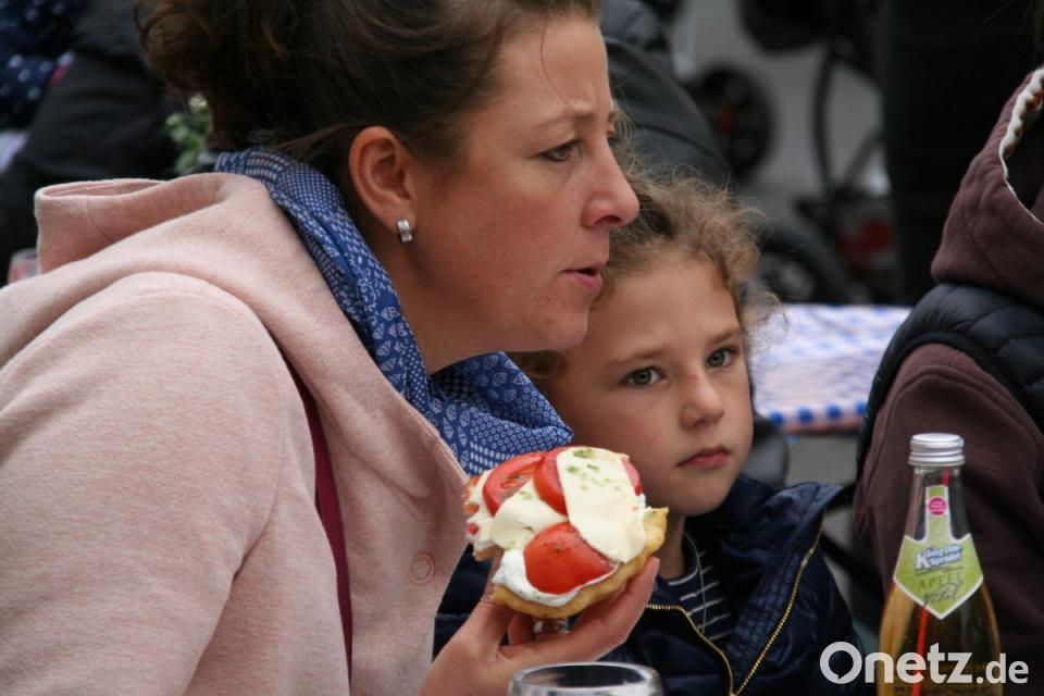 Immer wieder waren Besucher dabei, den Angebots-Flyer der Jubiläums-Schlemmermeile als Wegweiser für ihren persönlichen Geschmack zu Rate zu ziehen. Hungern musste bei der Riesenauswahl keiner. Besonders in den Abendstunden waren Bullen-Burger, Pizzen und deftige Baguettes gefragt. Wem der Rummel zu groß wurde, der nutzte den nahen Stadtpark zum Entspannen oder wärmte sich im neuen Rathaus bei Kaffee und Kuchen auf.