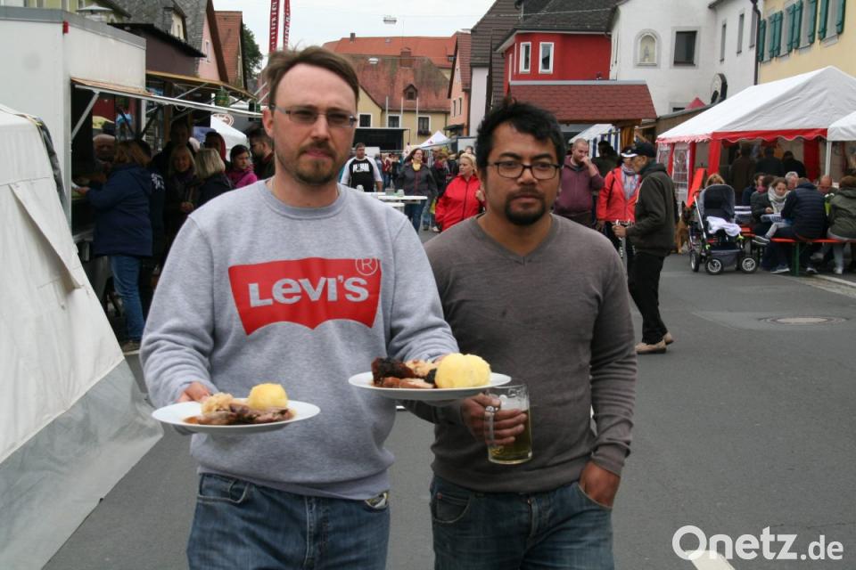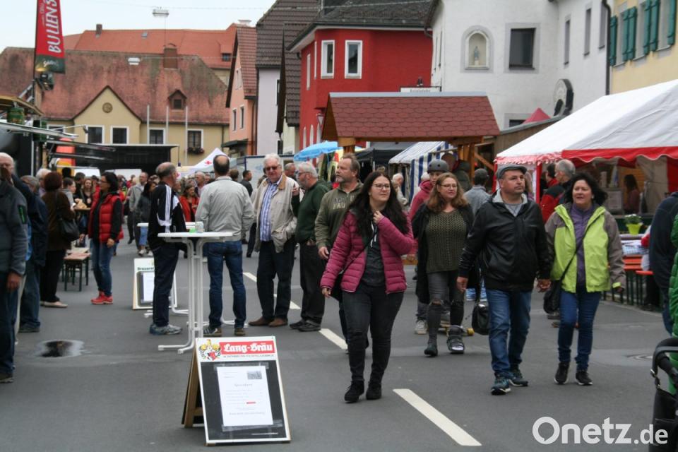 Die Schlemmermeile feierte am Samstag ihren 20. Geburtstag. Trotz des ungünstigen Wetters strömten Besucher aus der ganzen Region bereits zur Mittagszeit in den gesperrten Markt, der für einen Tag zum Ortsteil Schlemmerhausen wurde. Schon der Frühschoppen der Kolpingfamilie ab 10 Uhr war gut besucht.