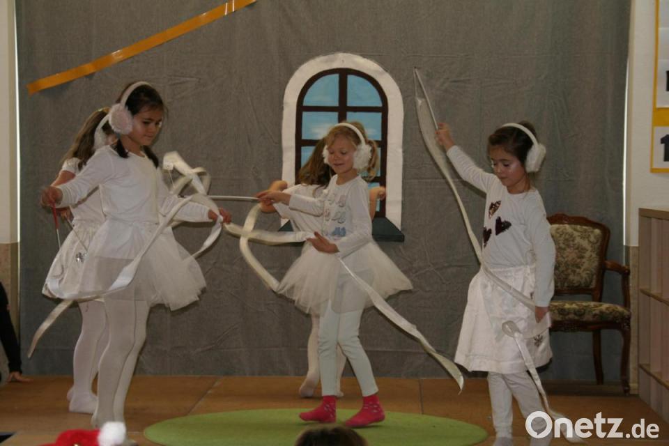 Die Percussions-Gruppe übernahm anschließend das "Antrommeln" für die Geschichte, die sich an Weihnachten in einem Dreifamilienhaus zuträgt. Für das winterliche Ambiente sorgte ein Schneeflockentanz.