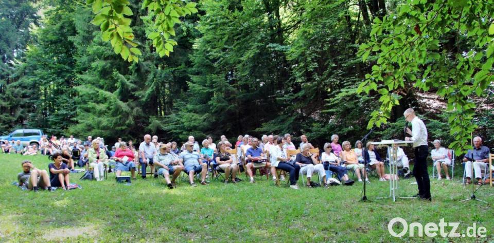 Schon auf dem Weg zur Waldlichtung zwischen Gerhardsberg und Schmidtstadt hörten die Gläubigen die Klänge des Posaunenchors Kirchenreinbach, die sie zum traditionellen Waldfest der Landeskirchlichen Gemeinschaft Hersbruck führten.