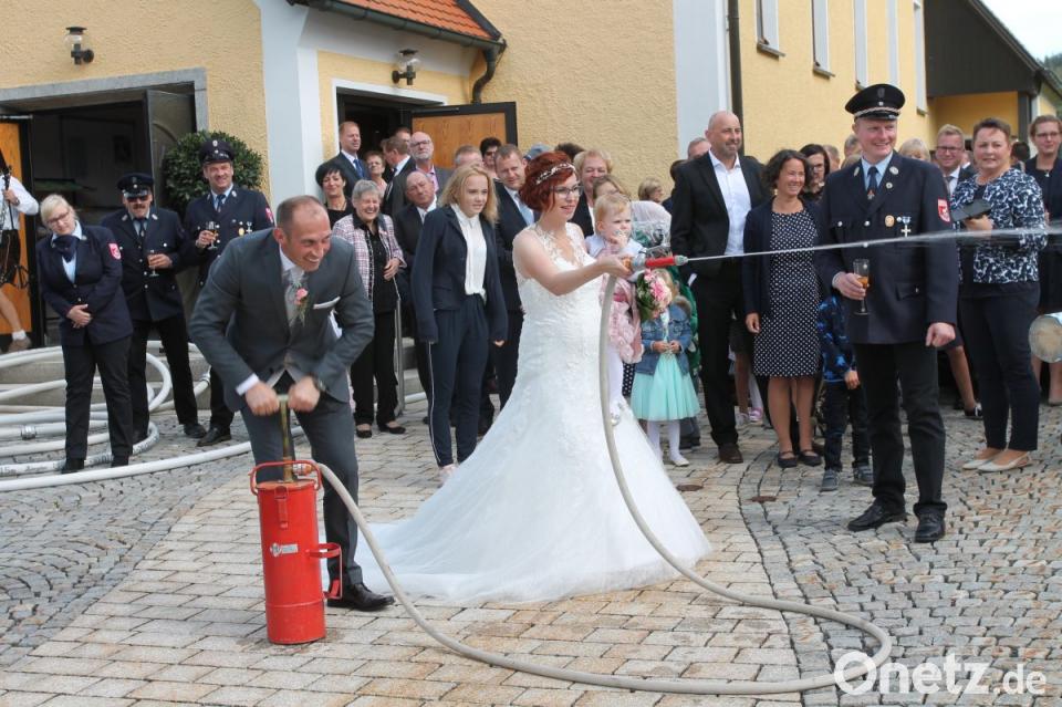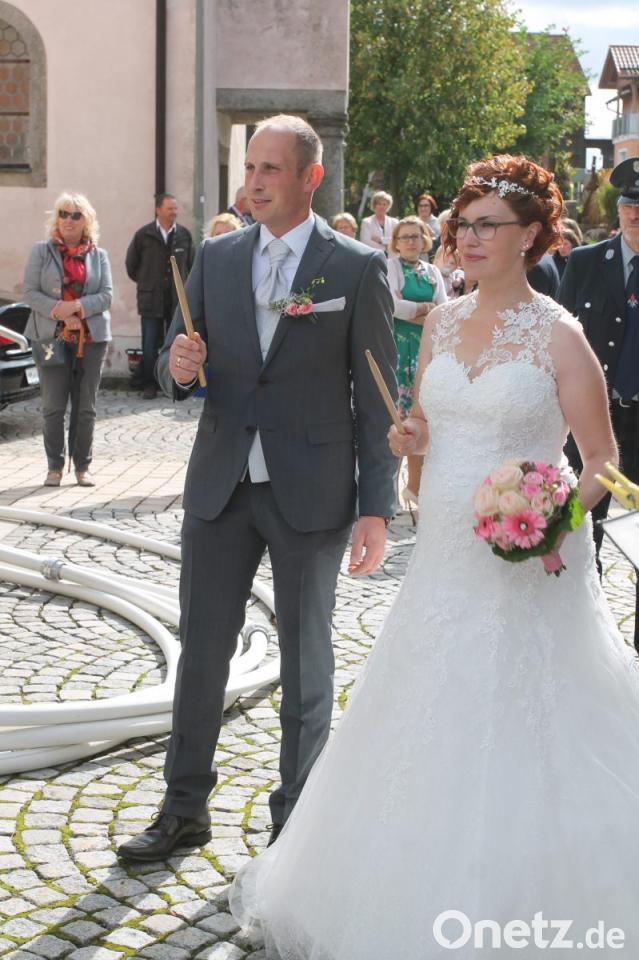 „Liebe ist faszinierend, wertvoll, aber auch pflegebedürftig“, sagte Pfarrer Julius Johnrose zu Anton und Michaela Plödt, geborene Schmid. „Für euch ist heute ein Tag der großen Freude und tiefen Dankbarkeit.“ Das junge Paar sagte am Samstag in der Filialkirche St. Josef „Ja“ zueinander. Die Eucharistiefeier wurde gestaltet von der Blaskapelle Waldkirch unter der Leitung von Bernhard Träger. „Heute feiern wir die Einheit zweier Herzen und die höchste Kraft der Liebe, die in den Herzen zweier junger Menschen gefunden wird; denn die tiefste Form der Liebe ist in der Ehe erfüllt“, sagte Johnrose. Und so bezeichnete er den 22. September 2018 auch als „Tag der Krönung eurer Liebe“. Strahlend genossen der Forstwirtschaftsmeister und die Friseurin zunächst die Glückwünsche der Feuerwehr Waldkirch mit Vorsitzendem Hubert Völkl an der Spitze und meisterten gemeinsam die Aufgabe mit der Kübelspritze.