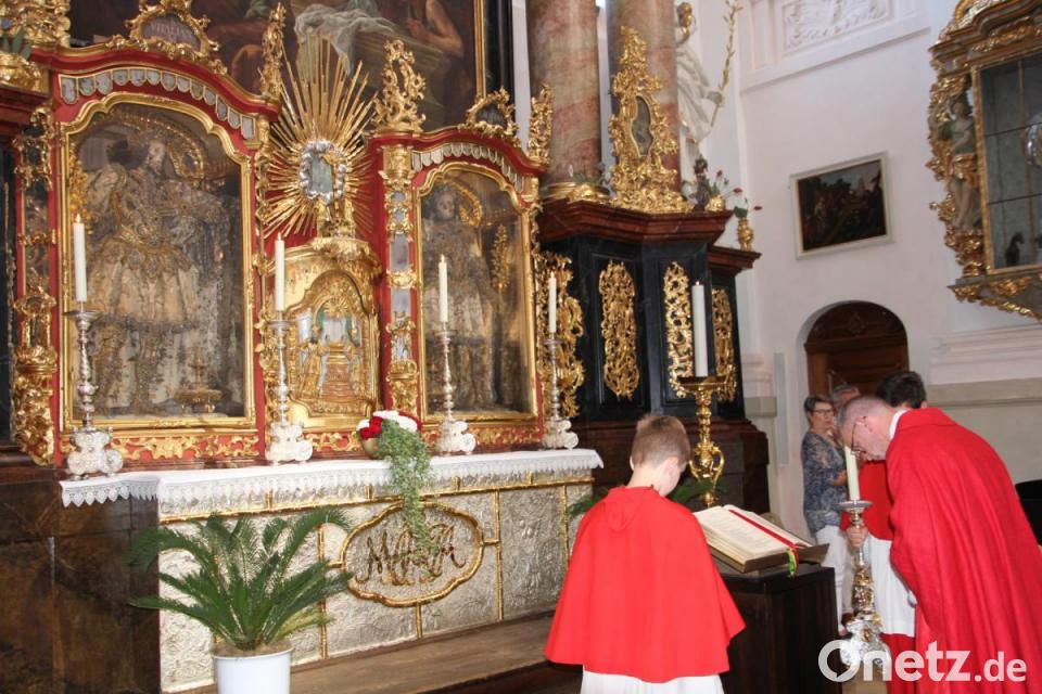 "Schön, dass wir diesen alten Festtag noch feiern", sagte Stadtpfarrer Thomas Vogl am Sonntag zum Beginn des Gottesdienstes zum "Heilige-Leiber-Fest" in der Basilika. Dieser Festtag, gefeiert jeweils am ersten August-Sonntag, gehe auf die Zisterzienser zurück. Weiter rief der Stadtpfarrer in Erinnerung, dass seit dem 17. März dieses Jahres täglich zu den Heiligen Leibern gebetet werde, im Vertrauen darauf, vor der Pandemie verschont zu bleiben. "Die Nachrichten machen uns bewusst, dass die Not noch nicht beendet ist", betonte Vogl.