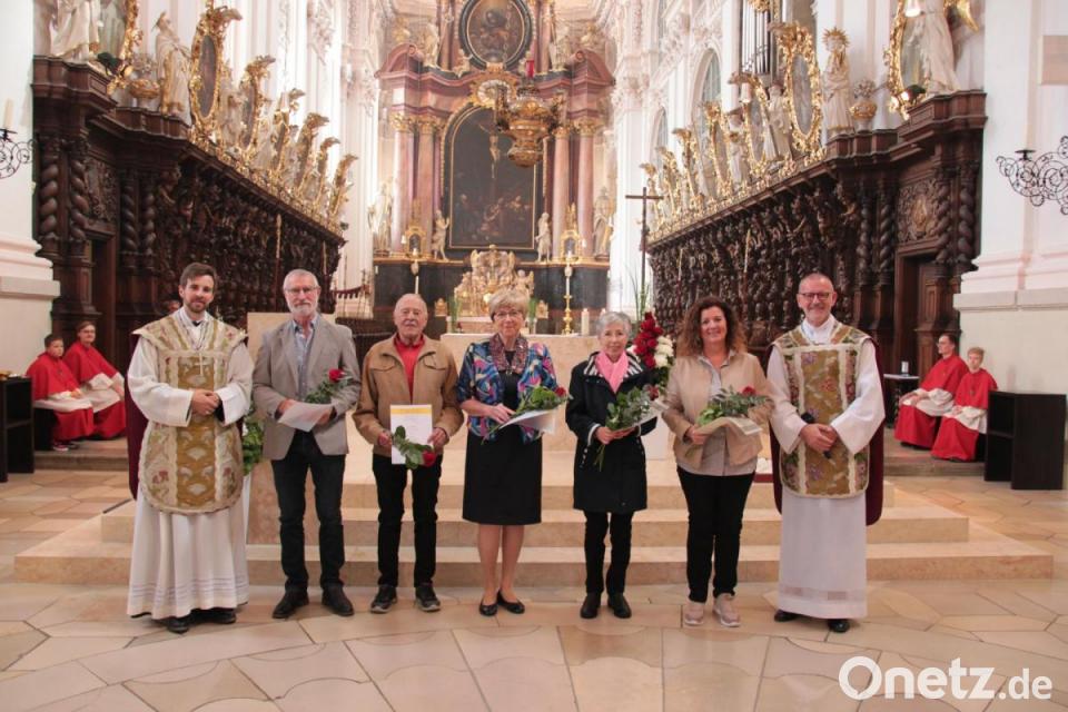 Es wurden mit der Urkunde des Bischofs in Gold Rita Ernstberger und Gisela Malzer für 50 Jahre „verdienstvolles Wirken in der Kirchenmusik“ geehrt. Eine Pfarreiurkunde für 10 Jahre „im Dienst der Kirchenmusik“ erhielten Renate Sperber, Hubert Thoma und Ludwig Wolf.
