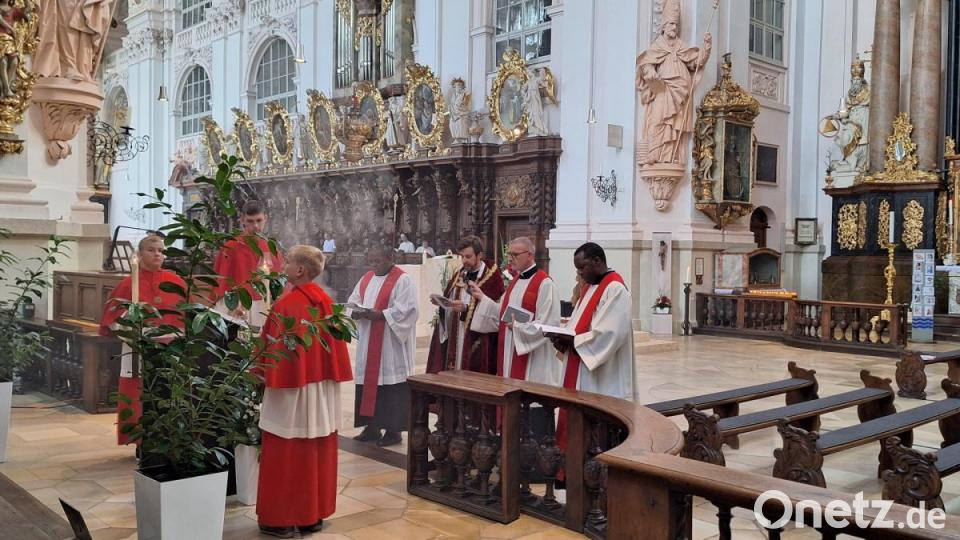 "Im realen Raum werden wir hineingenommen in eine andere Wirklichkeit", sagte der Propst und zeigte auf die Decke zur großen Kuppel der Basilika: Dort ist bildhaft der Himmel geöffnet und lässt einen Blick zu in die Ewigkeit. "Greifbar sind die Heiligen unter uns", so der Prediger über die kostbar verzierten Leiber in den Seitenaltären. "Auch wenn Zweifel bleiben, dass einem etwas vorgegaukelt werden könnte, so ist doch die Hoffnung stärker, und diese findet gerade im Heilige-Leiber-Fest seit langer Zeit ihren Ausdruck", heißt es in der Mitteilung über den Inhalt der Predigt.