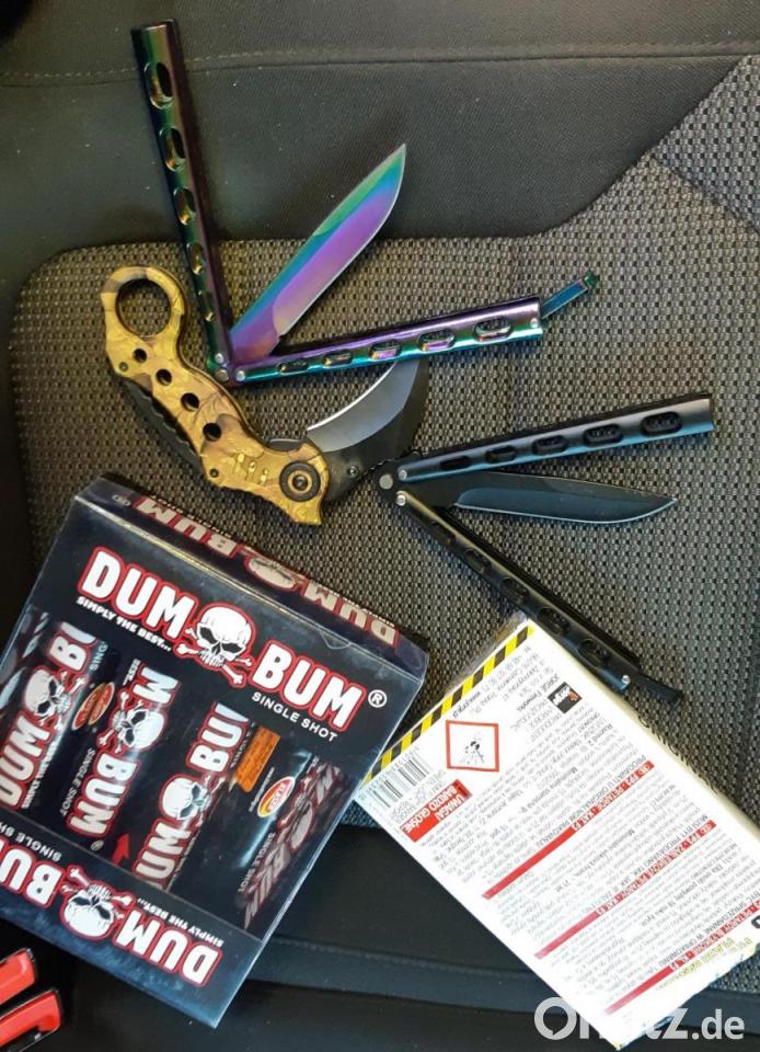 Die Beamten kontrollierten den 57-jährigen bei Waldsassen, nachdem dieser gerade von einem tschechischen Asiamarkt nach Deutschland zurückgekehrt war. Dort hatte er sich mit verbotenen Waffen und Böllern eingedeckt. Aus der Mulde des Ersatzreifens förderten die Beamten zwei Butterflymesser, ein Springmesser, 20 Böller der Marke "Flash Bangers" und vier Großböller mit dem bezeichnenden Namen "Dum Bum" zu Tage.
