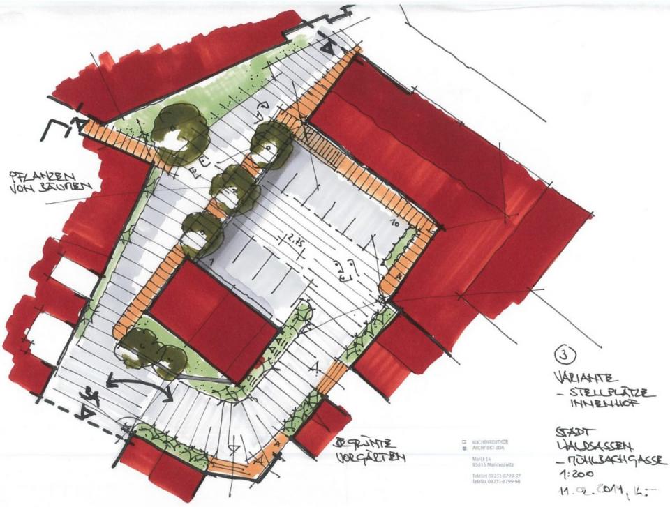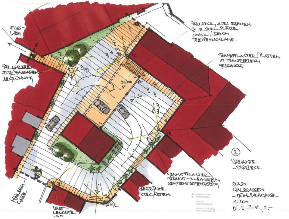 Der Bereich soll "nicht einfach mit Blech zugeparkt werden", wie Sommer erklärt: Deshalb ist Architekt Kuchenreuther aus Marktredwitz mit den Planungen beauftragt worden, der inzwischen vier Varianten vorgelegt hat - unter anderem eine mit einem Parkdeck für eine zweite Ebene mit Stellplätzen. Nach Informationen von Oberpfalz-Medien ist diese Variante aber inzwischen verworfen worden: Denn die erhöht abgestellten Fahrzeuge würden die Blickachse zu den historischen Gebäuden in der Umgebung stören. Auf der Parkfläche nur auf einer Ebene ließen sich die Autos eher "verstecken", wie es heißt. Außerdem wären bei der Version mit dem Parkdeck mehr Verkehrsflächen nötig. Bis 2020, so Bürgermeister Sommer, sollen auch die Außenanlagen des Kloster-Mühlenviertels fertiggestellt sein; diesen müsse derselbe Anspruch auf Wertigkeit zugestanden werden wie bei den Gebäuden.