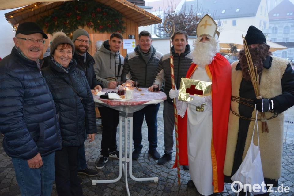 Bürgermeister Bernd Sommer dankte allen Fieranten und Vereinen, die mit ihren Buden für Leben in der Kunstgasse und den Neuen Gärten sorgten. Den Besuchern riet er, aufmerksam durch die Budenstadt zu schlendern: "Es ist viel Interessantes dabei, auch kulinarisch bleiben kaum Wünsche offen." Den Gästen wünschte der Bürgermeister in der Adventszeit einige ruhige Tage. "Konzentrieren wir uns auf das Wesentliche und verbringen wir die Zeit mit unseren Kleinsten", forderte Sommer und stellte das Programm des Marktes am ersten und zweiten Adventswochenende vor. Dann ergriff der Nikolaus das Wort. "Lieber Bernd, halte mal den Stab", sagte der himmlische Gast und überreichte dem Bürgermeister seinen Bischofsstab. In seiner kurzen Rede versicherte er den kleinen Besuchern, dass er sie am 5. Dezember zu Hause besuchen werde. "In meinem goldnen Buch steht geschrieben, was ihr heuer habt getrieben. Und wer recht artig war, bekommt von mir was, ist doch klar." Anschließend verteilte der Nikolaus, begleitet von seinem Knecht Ruprecht, süße Leckereien.