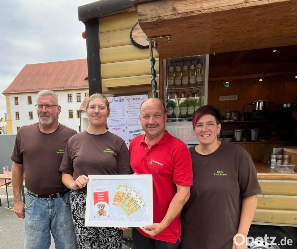 Martina und Thomas Richtmann überreichten gemeinsam mit ihrer Tochter Sarah eine Geldspende an die Kinderkrebshilfe. Die Summe von 450 Euro kam durch freiwillige Beiträge der Kundschaft am Crêpes-Stand zusammen – viele gaben ihr Wechselgeld direkt in die Spendenbox. Auch Sarahs Bruder Sebastian spendete sein Trinkgeld, um den guten Zweck zu unterstützen. Der Waldsassener Thomas Richtmann betreibt unter dem Namen „Bärlis Spezialitäten“ einen Verkaufswagen für Crêpes. Thomas Mathes nahm die symbolisch „süße“ Spende entgegen und bedankte sich bei der Familie für ihr Engagement. Direkt am Stand informierte er interessierte Gäste darüber, wie und wo die Spendengelder verwendet werden.