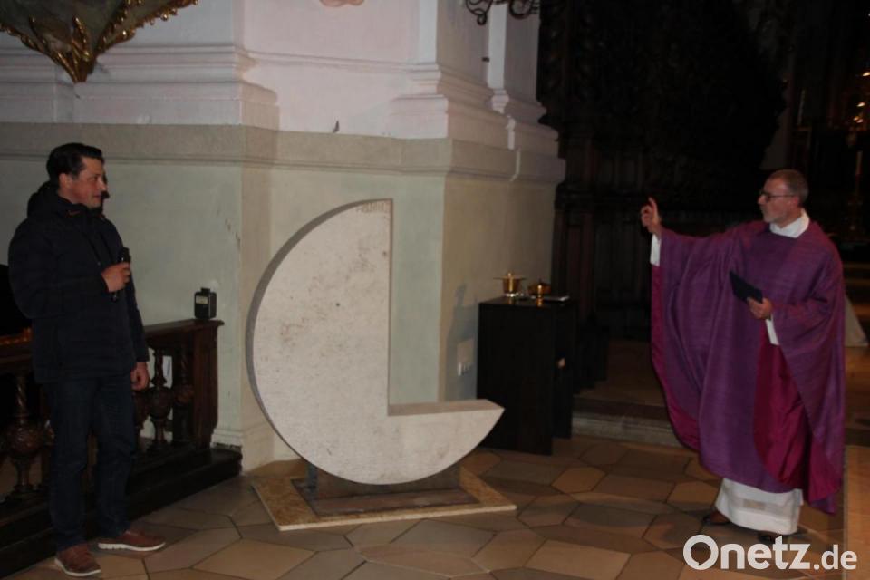 Sein Glaube habe diese Arbeit zu einem gesamten „Rund“ vollendet und gebe dem Stein somit des fehlende Gleichgewicht. Der Stadtpfarrer lud die Gläubigen zum Betrachten dieses Kunstwerks ein.