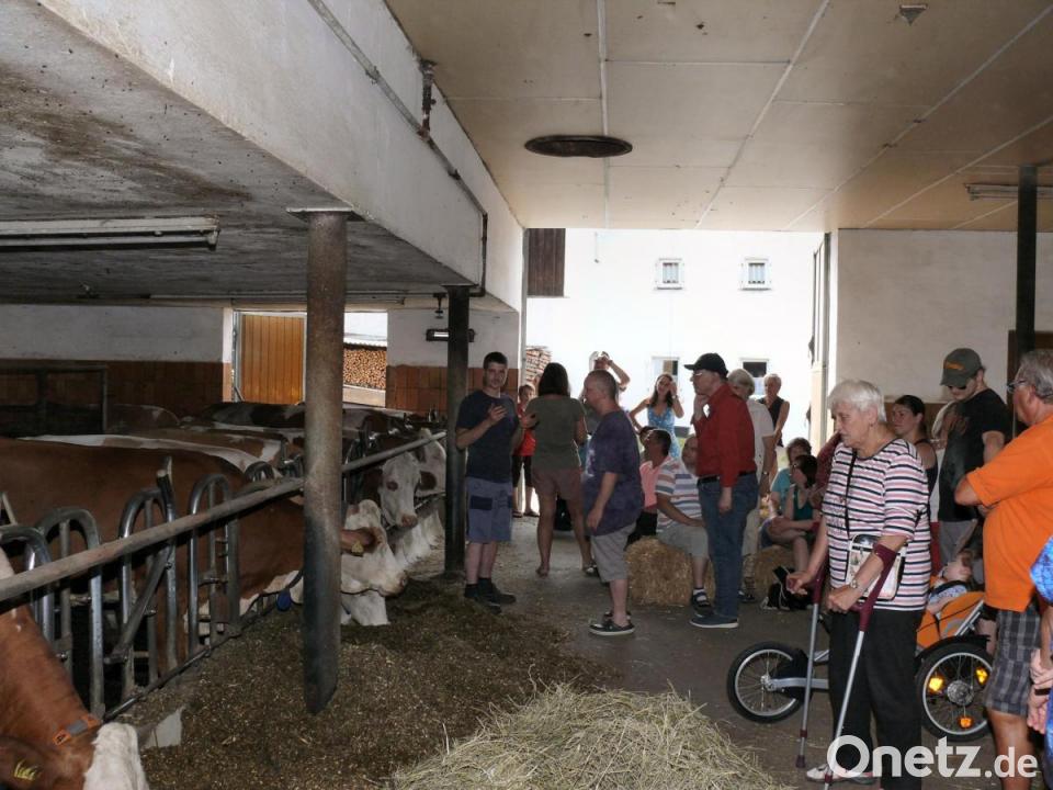 Nach dem Kaffeetrinken lud Petra Sommer-Stark zur Besichtigung des "Erlebnis-Bauernhofes" von Michael Richtmann ein. Dort ging es in den Stall zu den Kühen, wo Bauer Richtmann den Besuchern einen sehr informativen Einblick über die Tierhaltung und in die betrieblichen Abläufe auf dem Hof gab.