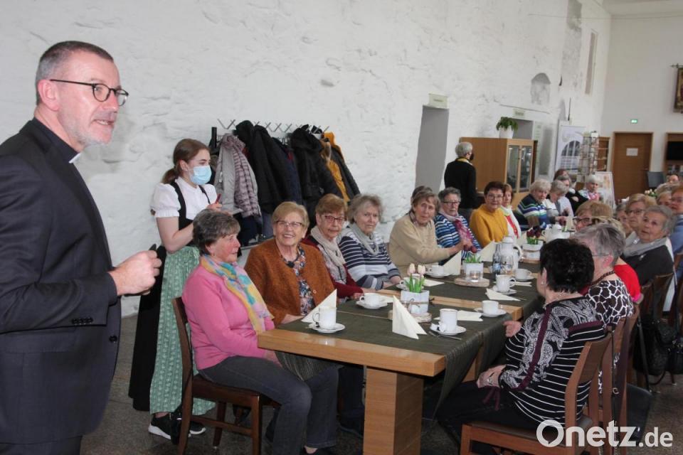 Vor dem Gottesdienst hatte die Pfarrei zu Kaffee und Kuchen ins Gästehaus St. Joseph eingeladen, an dem neben Stadtpfarrer Dr. Thomas Vogl auch Pater John Gali und Pfarrvikar Dr. Timon Odeny teilnahmen. Beide waren später auch beim Gottesdienst mit dabei. Bei Kaffee und Kuchen dankte der Stadtpfarrer vor allem Irmgard Ballon, die sich von Beginn an um die Anbeterinnen und Anbeter kümmert. Aktuell gibt es davon 66, 53 waren bei der Kaffeerunde im Gästehaus St. Joseph dabei.