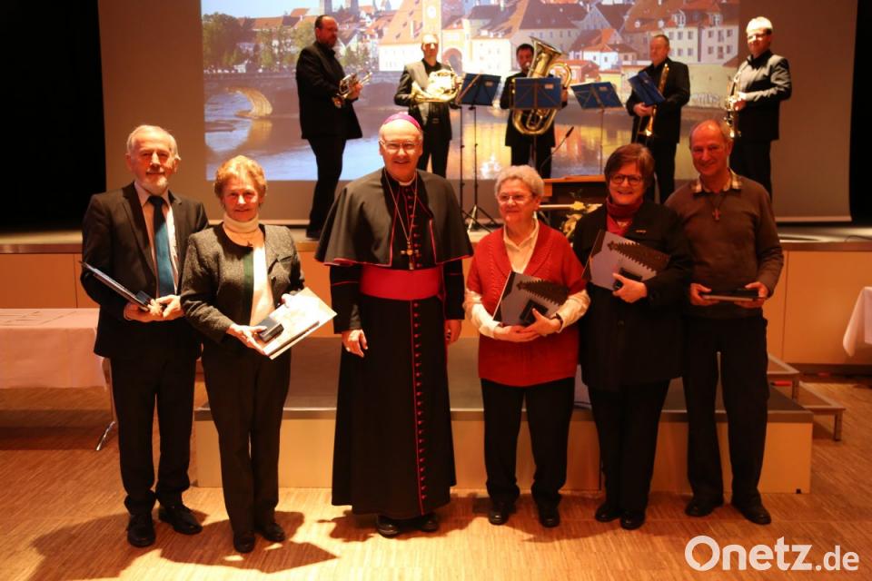 Fünf Personen zeichnete Bischof Rudolf Voderholzer am Sonntag bei einem Empfang in Regensburg für ihr Wirken mit der St.-Wolfgangs-Verdienstmedaille aus. Neben Annemarie Schraml erhielten die Anerkennung Gerd Sommer (Landshuter Pfarrei St. Margaret), Gertrud Pledl (Plattling, St. Magdalena), Ursula Brandlmeier (Neustadt/Donau) und Heinrich Kurzendorfer (Waldmünchen).