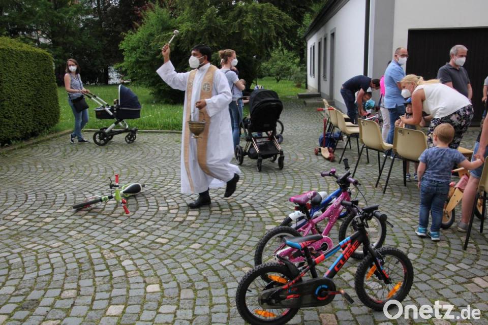 Unter dem Motto „Mit dem Bobbycar zu Gott“ lud am Freitagnachmittag die katholische Pfarrei zu einer Kinderkirche im Pfarrgarten ein. Gestaltet wurde die kindgerechte Andacht von Pater John Gali, sowie von Monika Mittereder und Tanja Scharnagl. Höhepunkt der Feier war die Fahrzeugsegnung durch Pater John Gali, der die mitgebrachten Bobbycars, die Laufräder und die kleinen Fahrräder, aber auch die Kinderwägen segnete.
