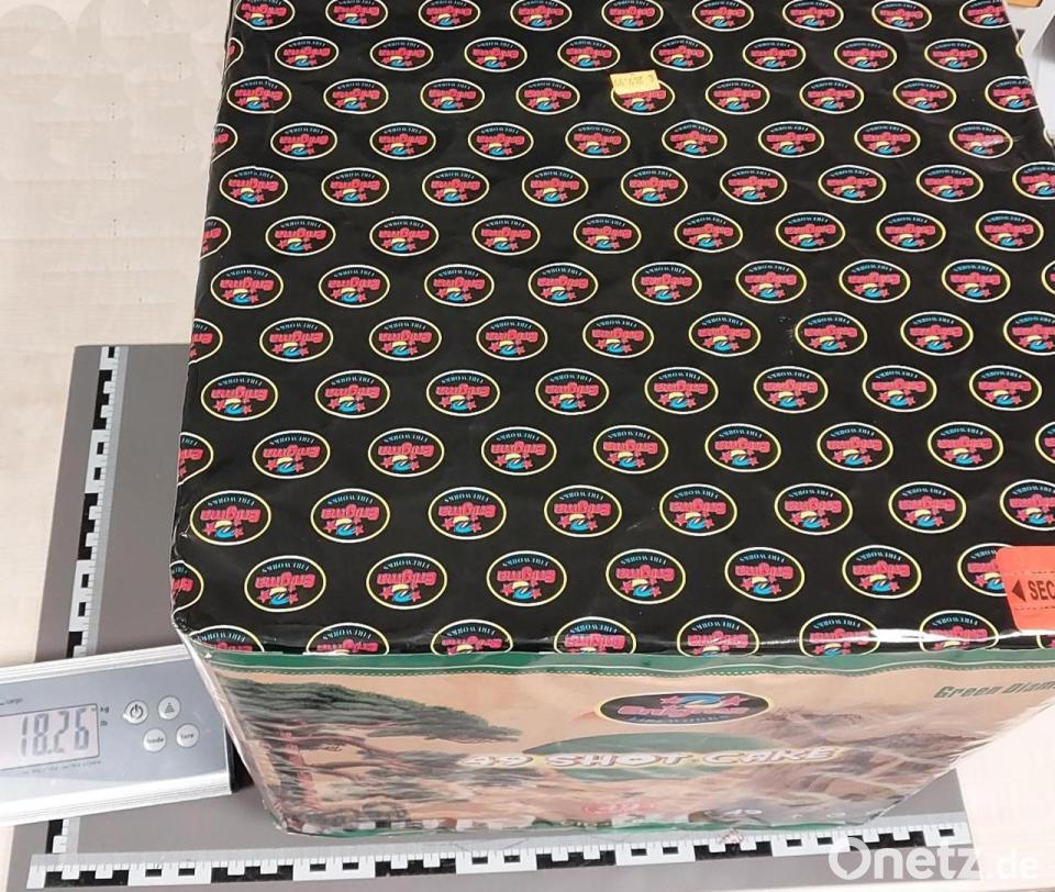 Am Samstag kontrollierten die Beamten im Stadtgebiet Waldsassen einen 30-Jährigen, der aus Tschechien eingereist war. Auf die Frage nach verbotenen Gegenständen öffnete der Mann seinen Kofferraum, in dem sich eine Feuerwerksbatterie des Typs „49 Shot Cake“ der Kategorie F4 mit einem Gewicht von 19 Kilogramm befand. Er gab an, die Batterie in Tschechien gekauft zu haben, konnte jedoch keine sprengstoffrechtliche Berechtigung vorweisen.