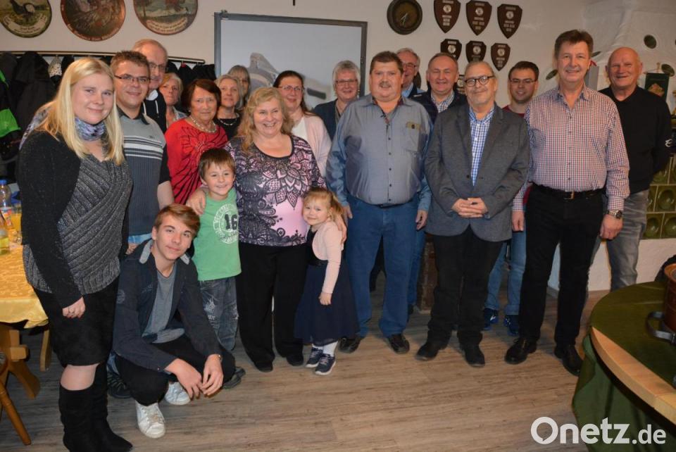 Mit vielen Gästen feierte am Samstag Dieter Franke (Siebter von rechts) im Mitterteicher Schützenhaus seinen 60. Geburtstag. Dazu gratulierten ihm Gattin Petra (links neben ihm), Sohn Tobias (Zweiter von links) und die gesamte Familie. Weitere Gratulanten waren (von rechts) Alfred Koch (Waldsassen), Gauschützenmeister Manfred Zölch sowie Mitterteichs Schützenmeister Wolfgang Friedl (Fünfter von rechts).