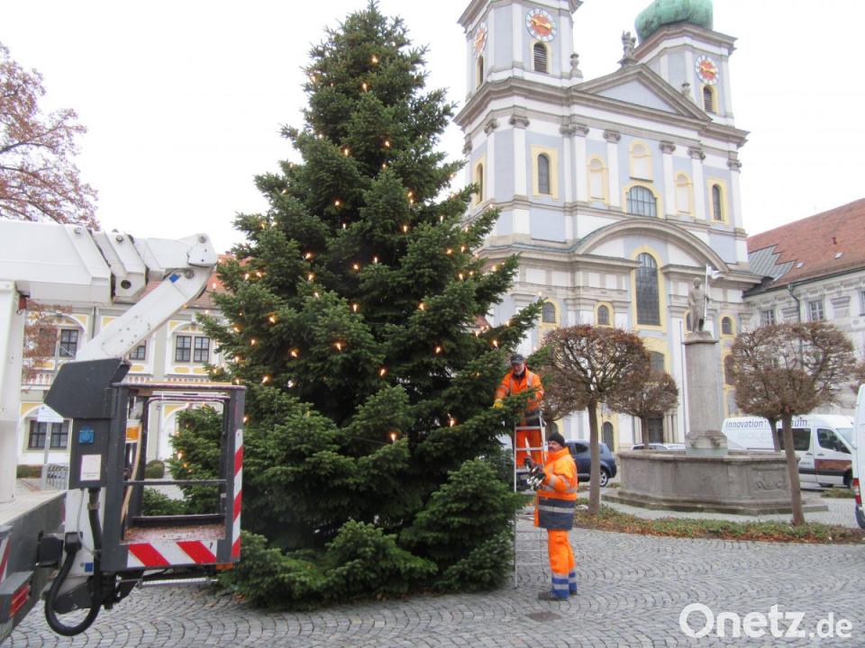 Stattlich und schön gewachsen ist der Nadelbaum, den die Mitarbeiter des Stadtbauhofs am Basilikaplatz aufgestellt haben. Ein weiterer Baum ist traditionell am Johannisplatz platziert. Weil sich zu den Advents- und Weihnachtsmärkten an den beiden ersten Dezember-Wochenenden die Stände ebenfalls zum großen Teil in den Neuen Gärten gruppieren, wurde dort ebenfalls ein Christbaum postiert. Wie es auf Anfrage bei der Stadtverwaltung hieß, sind alle drei Christbäume auf den öffentlichen Plätzen von privaten Grundstücksbesitzern in Waldsassen zur Verfügung gestellt worden.