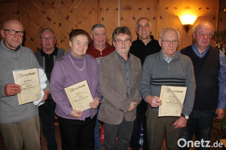 10 Jahre dabei sind Andrea Gutwein, Monika Bergmann, Maria Ernstberger, Andreas Lang, Johannes Fortelny, Markus Konrad, Robert Zinnecker und Gerhard Wedlich. 15 JahreMitglied sind Franziska Fischer, Rudolf Fischer, Annemarie Männl und Heinrich Grötsch und 20 Jahre Josefine Schröpf, Ludwig Hecht und Uwe-Karsten Mühlenbeck. Für25 JahreBVS-Reha-Sportverein-Zugehörigkeit wurden Peter Fuchs und Adolf Kraus ausgezeichnet. Seit30 Jahrensind Marianne Richter und seit 35 JahrenOtto Schnierer im Verein aktiv. (kro)