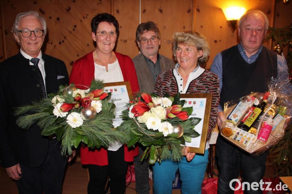 Edith Balk und Margret Dressel erhielten vom BVS-Bezirk Oberpfalz für jeweils 25 Jahre Übungsleitertätigkeit die Ehrennadel in Silber. Die Auszeichnung überreichte der stellvertretende BVS-Bezirksvorsitzende Dieter Menzel. Vom BVS-Reha-Sportverein Waldsassen gab es zudem jeweils einen Präsentkorb und einen Blumenstrauß.