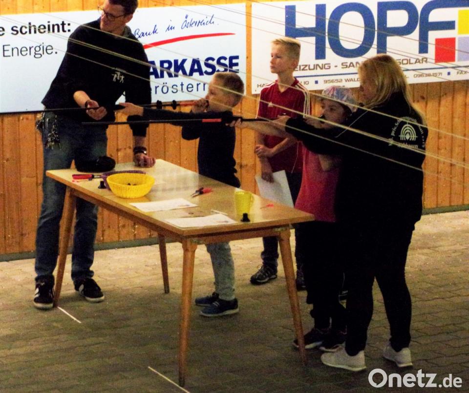 2. Schützenmeister und 2.Jugendleiter Jürgen Hecht als hauptverantwortlicher Organisator der Königlich-privilegierten Schützengesellschaft begrüßte mit seinem Team die Kinder. Am aufgebauten Parcours waren vier Stationen zu durchlaufen: Schießen mit der Erbsenpistole, Büchsenwerfen, Schießen mit dem Blasrohr sowie Bogenschießen. An allen Stationen war Treffsicherheit gefragt und hierfür waren in drei Durchgängen Punkte zu erzielen.
