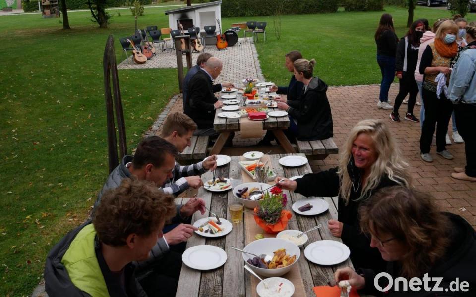 Zum Erntefest hatte die Mittelschule Waldsassen zahlreiche Gäste aufs Gartengelände eingeladen. Auch Geschäftsführer Arno Schwarz, Jonas Baumgärtner und Andreas Malzer von der Firma Kassecker waren dabei. Das Unternehmen hat vor vier Jahren den Bau des Schulgartens unterstützt und pflegt immer engen Kontakt zur Schule.