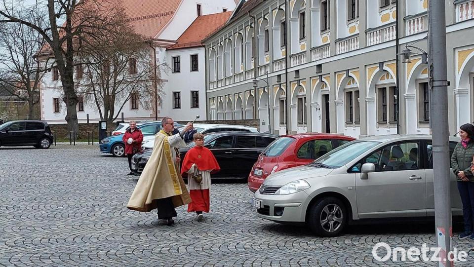 Gleich im Anschluss folgte eine Fahrzeugsegnung: Dazu waren wieder Autos am Basilikaplatz abgestellt, der sonst nicht als Parkfläche zur Verfügung steht. Wie es schien, waren es dieses Jahr aber weniger Fahrzeuge als sonst.