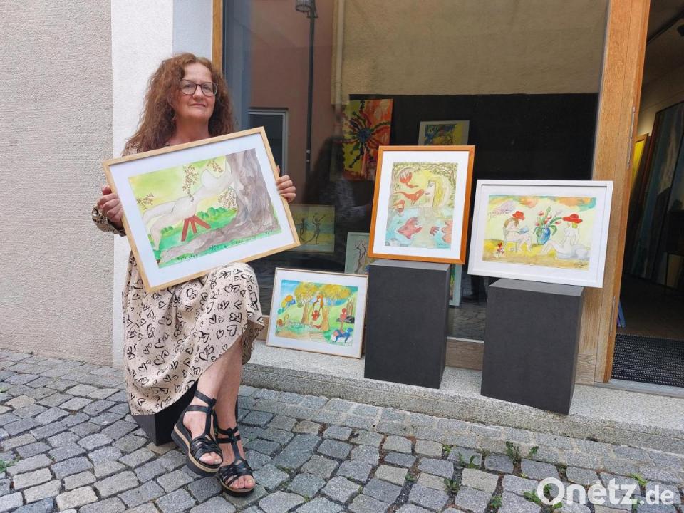 Obwohl die Mitarbeiterin von Oberpfalz-Medien lieber schreibt als malt, stellt sie aktuell im Schaufenster des Kunsthauses Waldsassen nun eigene Malereien aus. Warum das Malfieber ausgebrochen sei in späten Jahren, habe nichts mit später Talentfindung zu tun. "Ich sehe mich nicht als Künstlerin und nehme weiterhin meinen Hut vor meinen Freunden, die große Kunst auf die Leinwand bringen."