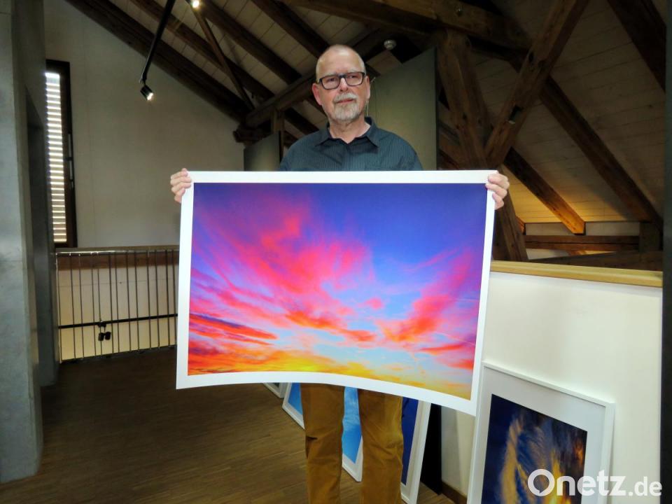 Der Fotograf, der sich die Klosterstadt seit 2014 als neue Heimat ausgesucht hat, liebt die Begegnungen mit dem Himmel über ihm bei seinen Spaziergängen mit seinen Hunden. Ein "Guck-in-die-Luft" sei er schon als Kind gewesen, sagt er und lacht leise dazu. Das habe ihm eines Tages ein unangenehmes Abenteuer beschert. "Ich habe solange die Wolken im Himmel betrachtet, bis ich an einen Eisenpfahl gelaufen bin. Dann waren die Zähne weg", erzählt er. Den Zahnverlust hat der heute 60-Jährige verschmerzt. Das "Himmels-Gucken"lässt ihn aber trotz der negativen Erfahrung nicht los.