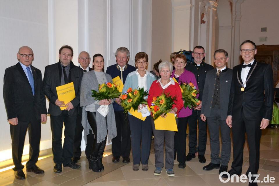 „Würde man die vielen Ämter zeitlich aneinander reihen, dann stünde hier ein Mann wohl im stattlichen Alter von mehreren Hundert Jahren“, sagte Bürgermeister Sommer über Robert Treml. Dabei nannte das Stadtoberhaupt neben den vielen ehrenamtlichen Aufgaben in etlichen Vereinen die Leitung des Stiftlandmuseums, die Jobs als Stadtarchivar und als Kreisheimatpfleger sowie die früheren Engagements in der Politik und in weiteren Bereichen. Dazu gehört auch das über 30-jährige engagierte Mitarbeiten in der Kirchenverwaltung, für das Treml beim Neujahrsempfang geehrt wurde – auch im Bewusstsein des anderen vielseitigen Wirkens. Vieles sei in der Kirchenverwaltung in dieser Zeit zu bewältigen gewesen, zuletzt die Sanierung der Basilika und die Neufassung der Innenraumschale. „Außenstehende können nur ahnen, wie oft um Entscheidungen gerungen werden musste, stets das Beste im Sinn.“
