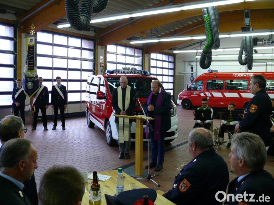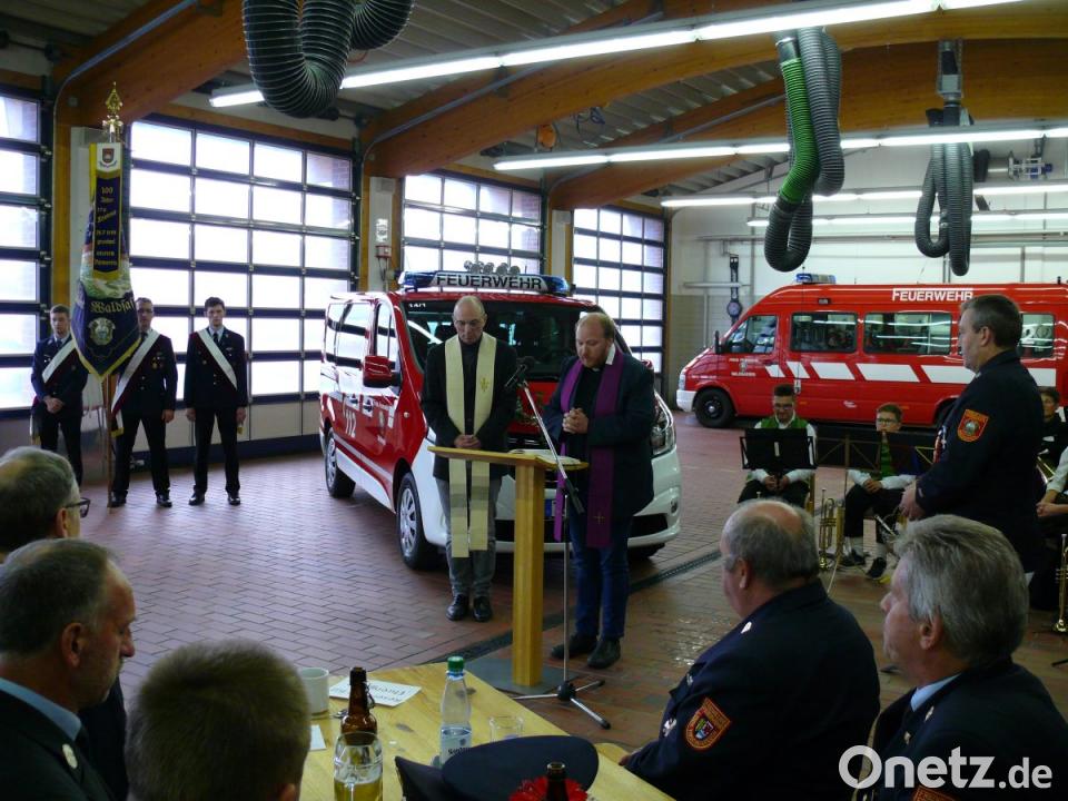 Der Kommandant erinnerte daran, als im Schnitt alle zwei Jahre die Segnung eines neuen Einsatzfahrzeuges gefeiert wurde. Der Feuerwehrverein habe stets seinen finanziellen Beitrag geleistet, wie auch bei diesem Mannschaftswagen geschehen. Nach der musikalischen Überleitung mit dem Kirchenlied "Lobe den Herren" durch die Blasmusik folgte die kirchliche Segnung des Fahrzeugs. Diese wurde mit dem Lied "Großer Gott wir loben dich" abgerundet.