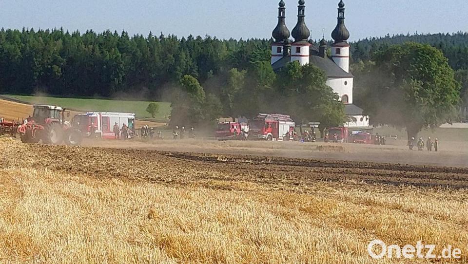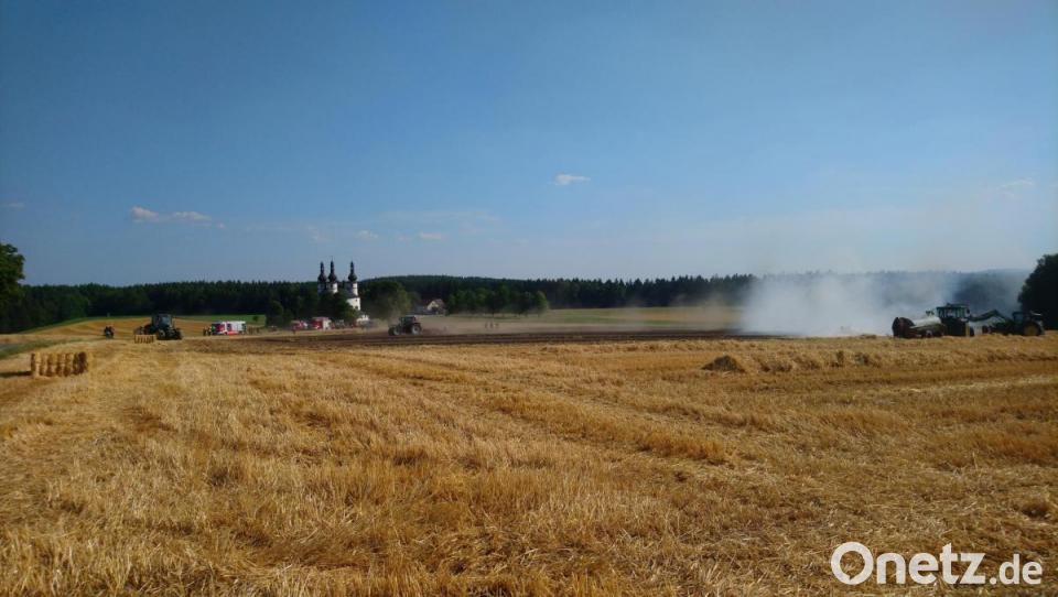 Am Donnerstag gegen 16.50 Uhr war ein 35-jähriger Landwirt mit Strohpressarbeiten auf einem Feld im Bereich Münchenreuth beschäftigt. Während der Arbeiten brach die Zapfwelle zwischen Traktor und Presse ab. Durch den hierbei entstandenen Funkenflug geriet die Feldfläche in Brand. Nachdem erste eigene Löschversuche erfolglos blieben, fuhr der Landwirt sein Gespann vom Feld und verständigte umgehend den Notruf.