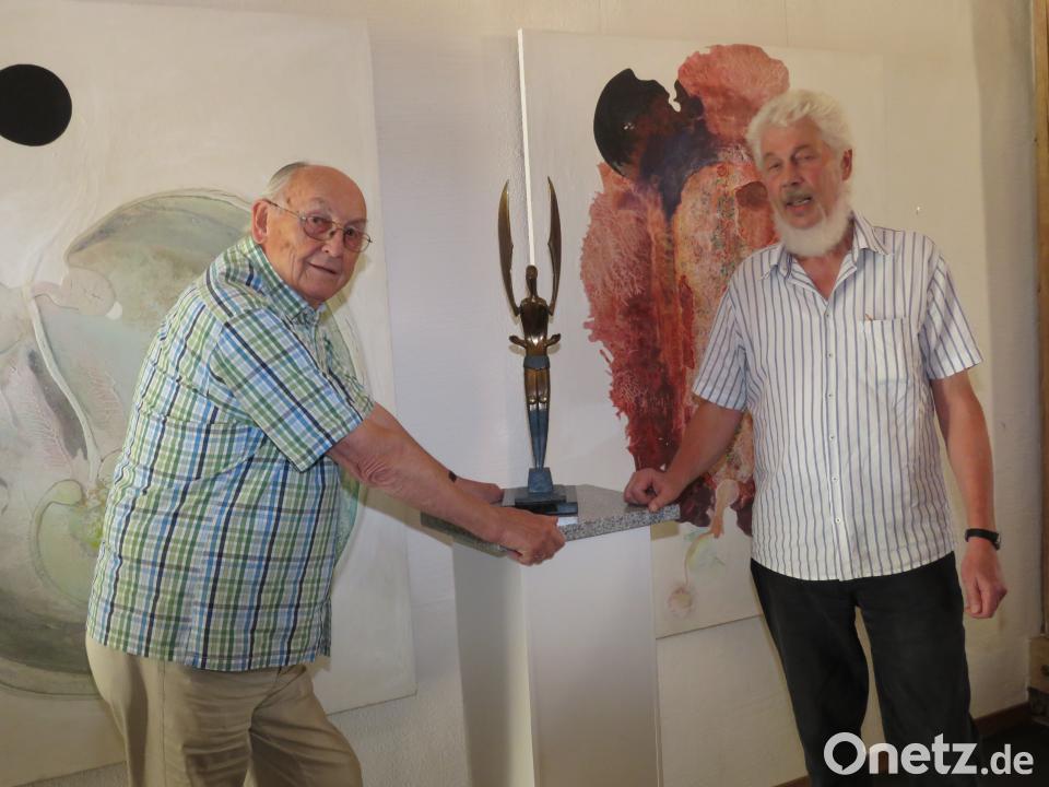 Hans-Georg Schulze hat über 50 Exponate aus seinem Fundus mitgebracht, darunter zahlreiche Bronzefiguren, Keramikfiguren, Wandbilder und mehr. Der pensionierte Zahnarzt aus Tirschenreuth feierte vor gut einer Woche seinen 87. Geburtstag und ist damit der älteste, aktive "Skulpturenbauer" in der Region. Seine Bronze- und Keramikfiguren gehören zur Extraklasse, was die Kunst zu bieten hat und beeindrucken vor allen Dingen durch eine ausgesprochen feinsinnige und freche Fantasie des Künstlers.
