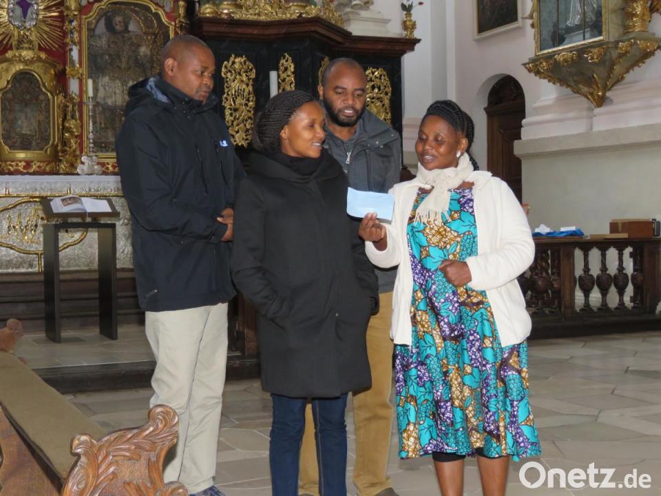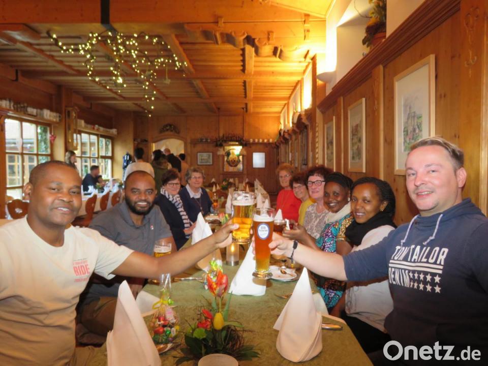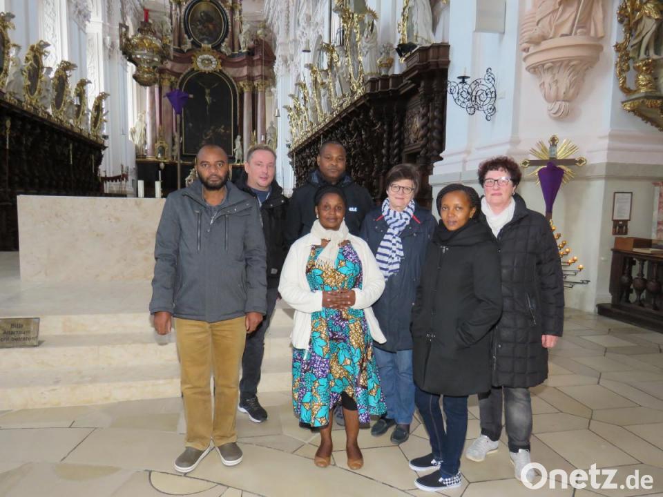 An der Besichtigung der Basilika nahmen neben Dr. Annemarie Schraml auch Physiotherapeut Alexander Weiß und Liselotte Kulzer, Seniorchefin des Möbelhauses Gleißner, teil. Weiß hat Dr. Schraml mehrmals zu OP-Einsätzen nach Tansania begleitet. Und Liselotte Kulzer ist eine Förderin des Hilfsprojekts "Feuerkinder". Im Kirchenschiff erklärte die Ärztin den Afrikanern Details des Bauwerks und seiner kunstvollen Einrichtung. Mit der prachtvollen Kirche habe der Erbauer unter anderem zeigen wollen, was Gott alles für die Menschen geschaffen habe und an Gutem tue. Die vier Afrikaner sangen spontan im Altarraum ein Lied für Jesus in Suaheli, ihrer Landessprache. In diesem traditionellen Lied geht es laut August Malliya darum, dass man Gott begegnen könne, wenn die Seele reingewaschen sei. Zum gemütlichen Beisammensein im Gasthaus "Prinzregent Luitpold" tischte wenig später die Familie Urbanek extra ein tansanisches Büfett für die Freunde von Dr. Schraml auf.