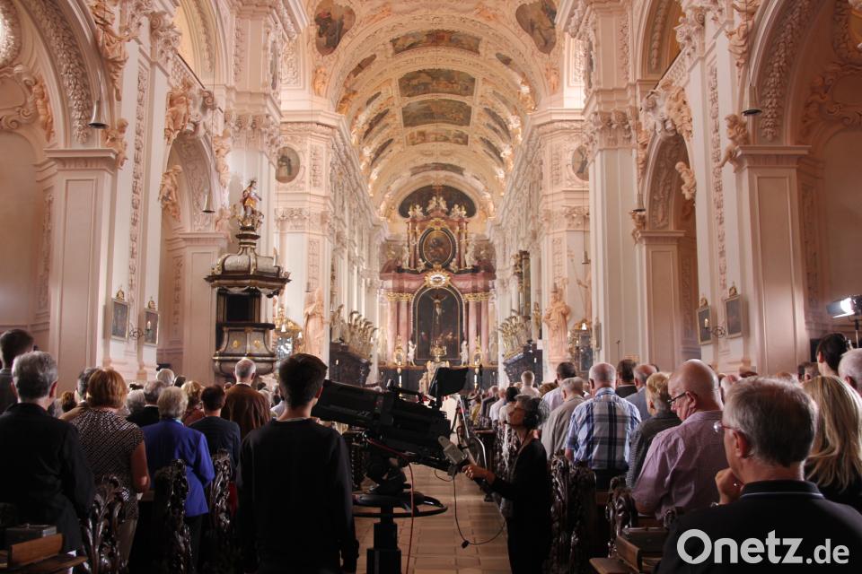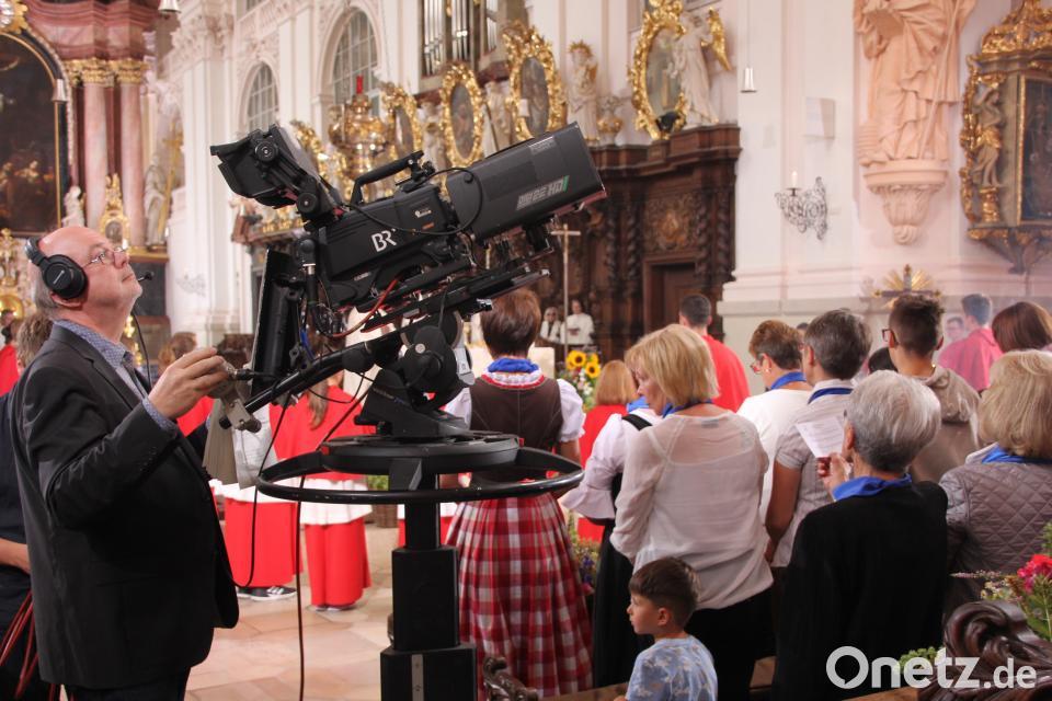 (kro) Das Bayerische Fernsehen übertrug den 10-Uhr-Gottesdienst an Mariä Himmelfahrt live aus der schmucken und architektonisch beeindruckenden Basilika in Waldsassen. Vier Kamerateams waren in der Basilika postiert. Seit Montag liefen die Vorbereitungen für den Gottesdienst. Ein 30-köpfiges Team des Bayerischen Fernsehens sorgte dafür, dass alles fernsehgerecht und reibungslos ablief.